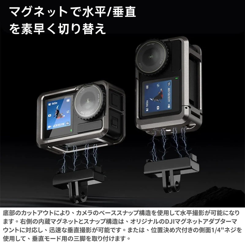 - [Magnetically Switching Portrait and Horizontal] When shooting horizontally, the quick release accessory attaches directly to the DJI Osmo Action 5 Pro/ACTION 4/ACTION 3 camera via the secure opening at the bottom of the cage free. When shooting vertically, the quick release accessories are held together and secured to the side of the rabbit cage, making it easy to meet your multi-scene photography needs