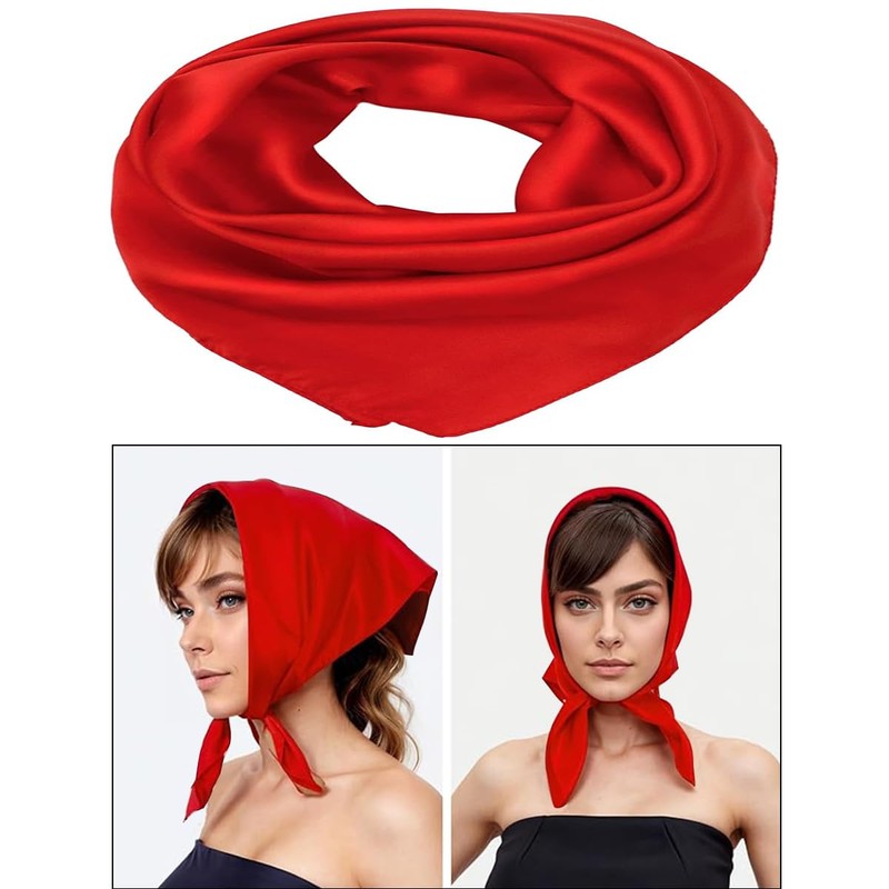 Rakiuty Women's Silk Scarf, Silk Headscarf, Plain Soft Silk Scarf, Neckerchief Size 70 cm x 70 cm, Women's Bandana Neckerchief, Silk Scarf for Women, Women's Scarf, Large Red
