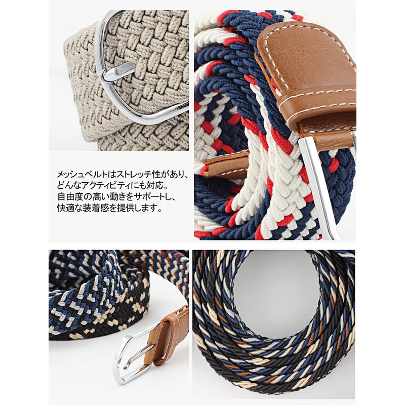 RAKUKOU Men's Mesh Belt, Set of 2, Adjustable Size, Braid, Elastic Belt, Stretchable, Casual, Business, Gentleman, khaki beige white