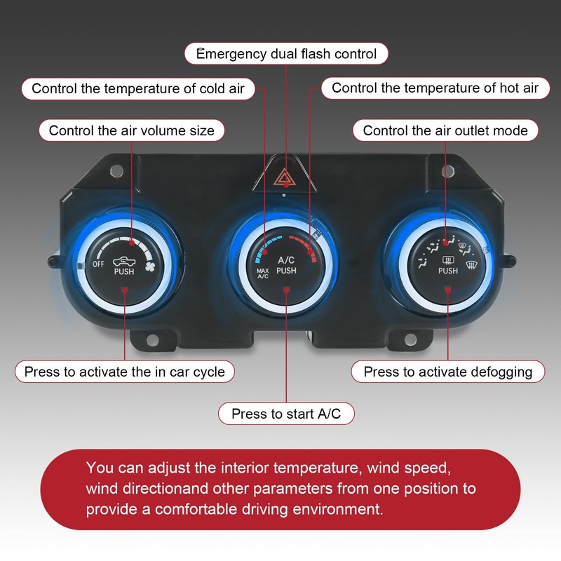 - Product Feature: This Temperature Control Climate Hvac System with A/C, heat, and defrost functions allows precise adjustment of the car's temperature, manages air circulation, controls AC and heating, and ensures clear visibility in cold or humid conditions