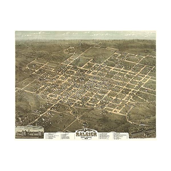 Raleigh, North Carolina - 1872 - Aerial Bird's Eye View Map Poster