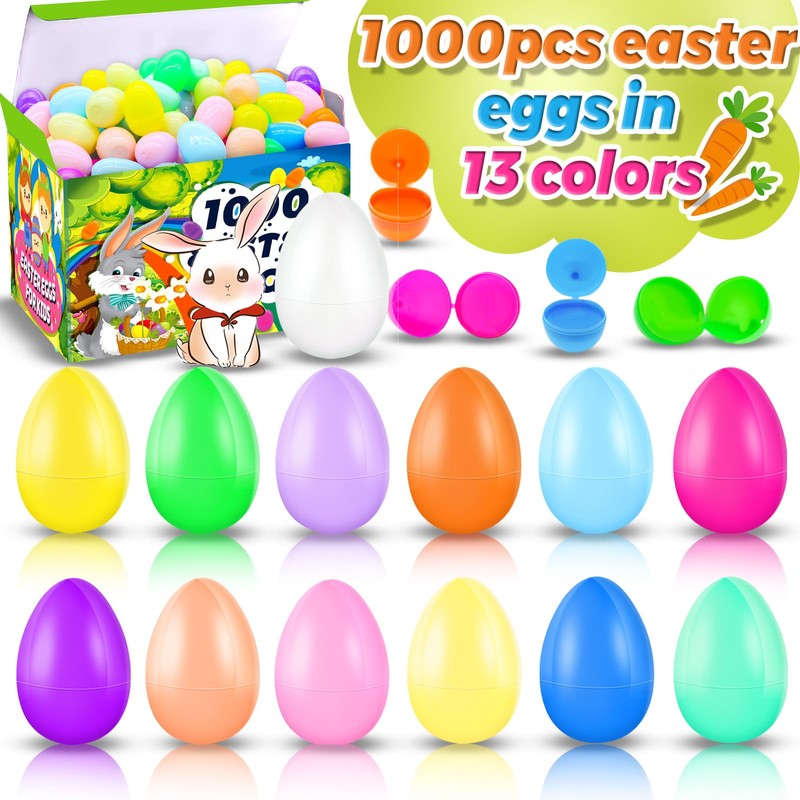 RALLYPANDA 1000cs Empty Plastic Easter Eggs,Bulk Fillable Easter Eggs for Easter Hunt,Basket Stuffers Fillers,Theme Party Favor Decoration,Surprise Eggs,Easter Classroom Prize Supplies