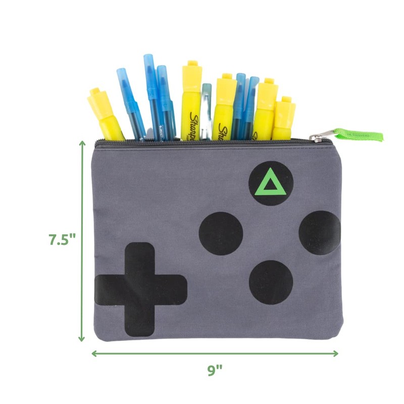 - INCLUDES A MATCHING PENCIL HOLDER – The soft pencil pouch (9" x 7.5") has a video game control graphic on it. It can be attached to the backpack with the included carabiner clip for hands-free travel, and is big enough for your personal items or travel essentials.