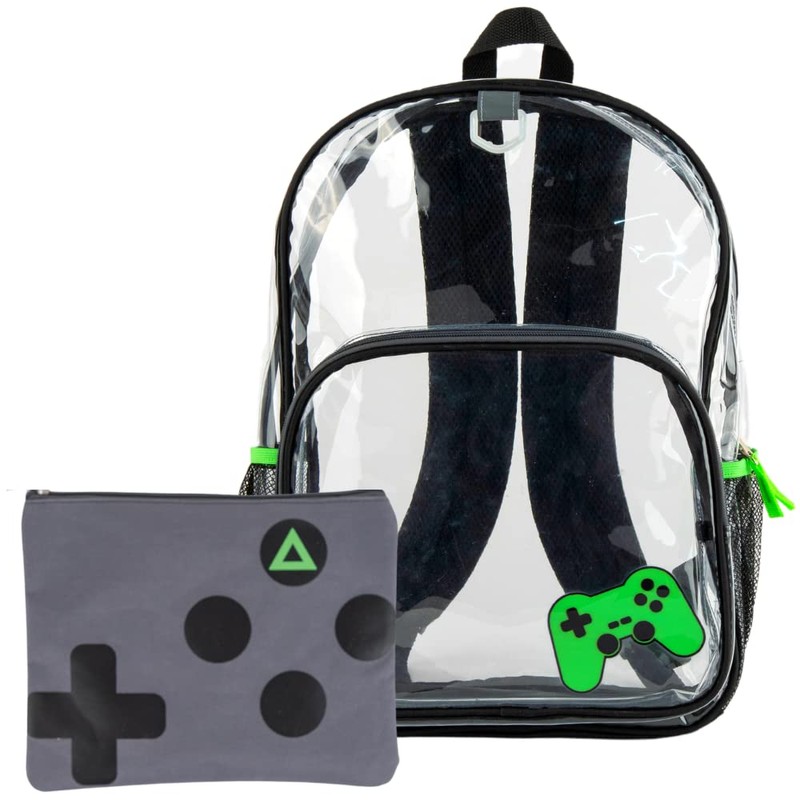 RALME Boys Clear Backpack for School, 16 inch Stadium Approved Transparent Bag with Matching Gaming Pencil Pouch, 3 Piece Set