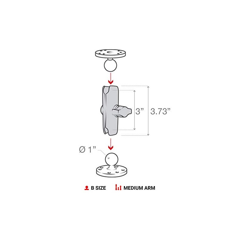 - Standard RAM double socket arm provides an ideal overall length of 3.73" and a socket-to-socket length of 3"