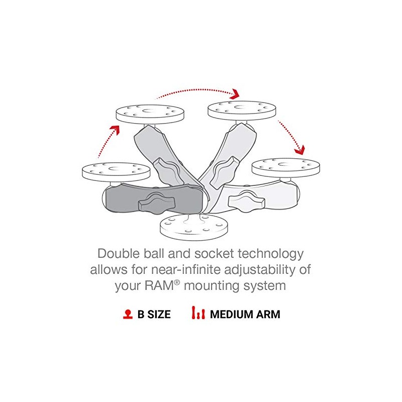 - Attaches to any B size RAM ball component, including mounting bases and device holders; double ball and socket technology allows for near-infinite adjustability of your RAM mounting system