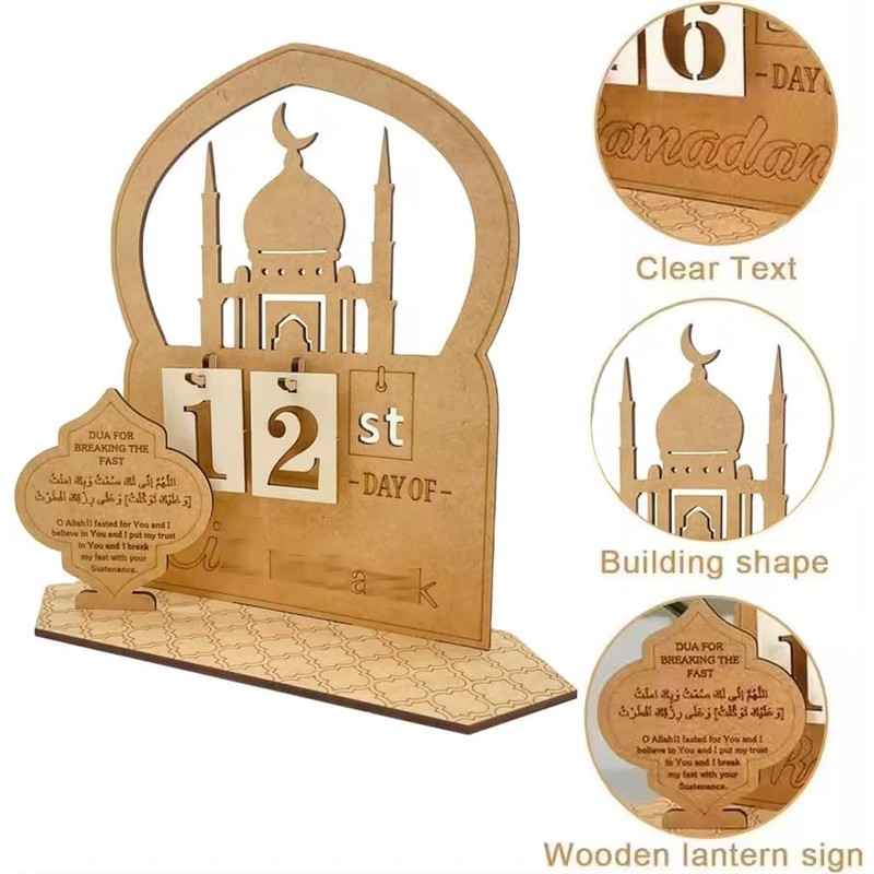 Ramadan Advent Calendar Wooden Countdown Calendars Decor, 30 Days Til Eid Ramadan Mubarak Table Centerpiece Muslim Ramadan Party Home Decoration, 2025 New Ramadan Gift for Kids