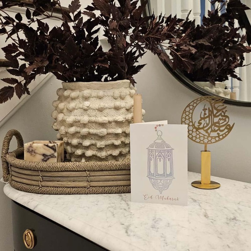 Ramadan Nights Islamic Greeting Cards Eid Mubarak Holographic Foil Lantern Design - 6 Pack with Envelopes, White