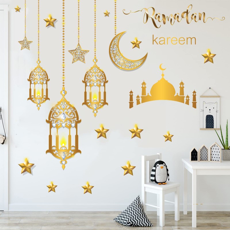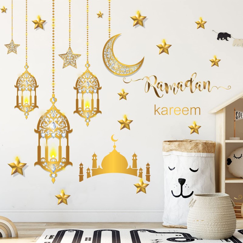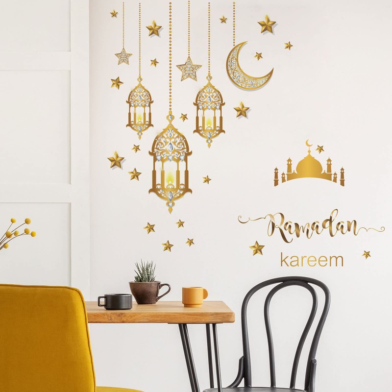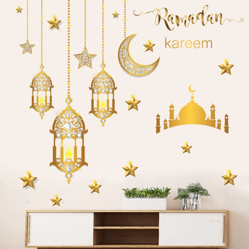 Ramadan Wall Stickers Islamic Muslim Wall Decals Stickers Hanging Eid Mubarak Ramadan Lantern Moon Star Window Decor for Home Living Room Bedroom Decorations Wallpaper (Lantern)