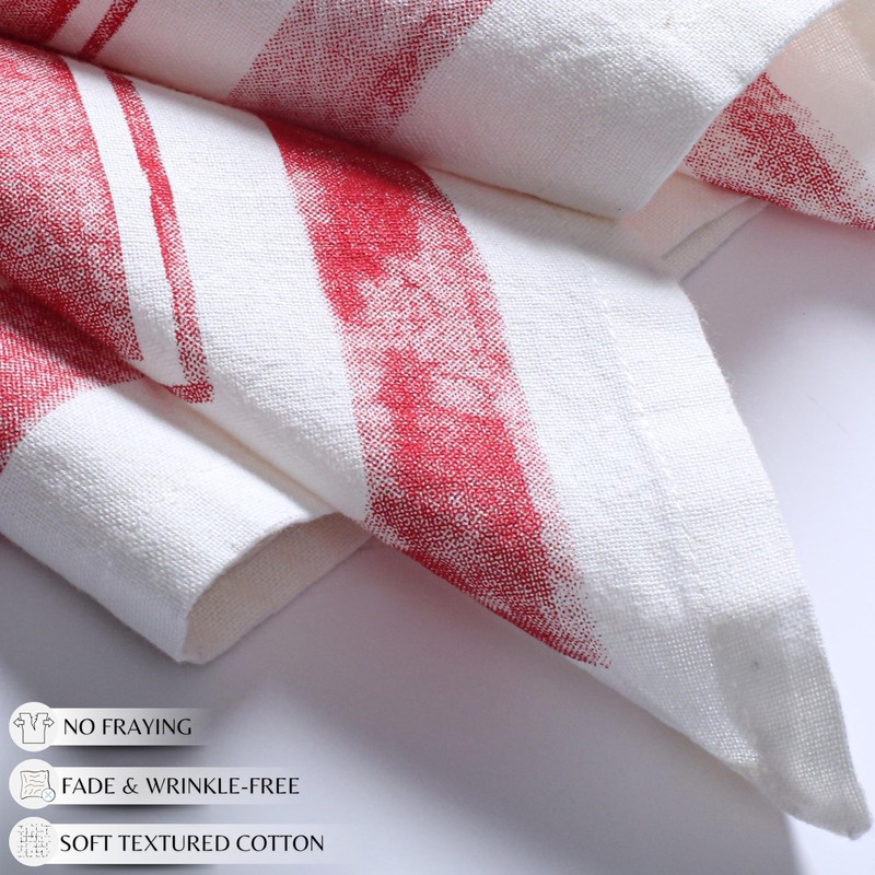 Ramanta Home Cloth Dinner Napkins Set of 12 18x18 Inches - Fall Thanksgiving Frame Border Napkins for Christmas Farmhouse Wedding, Soft Washable 100% Cotton Durable Table Linen for Everyday Use - Red