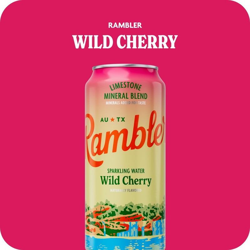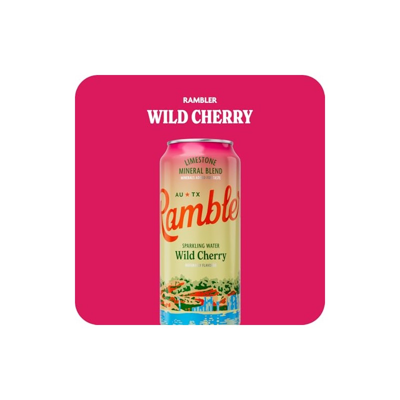 AUTX RAMBLER Sparkling Water, Texas Limestone Mineral Blend, Wild Cherry Flavor, 16-Ounce Tallboy Cans, 12-Pack