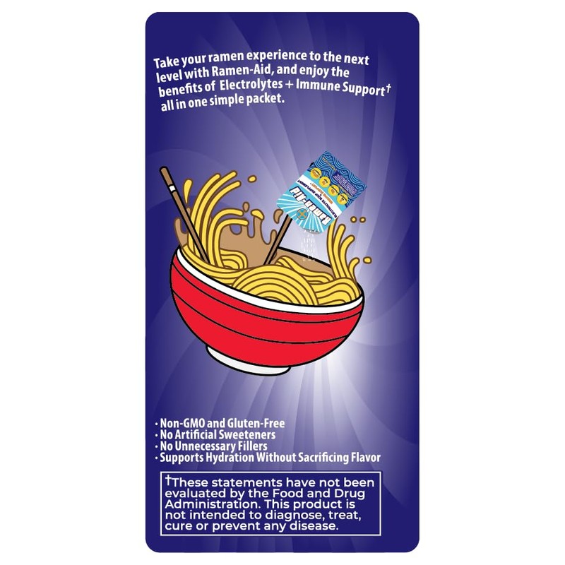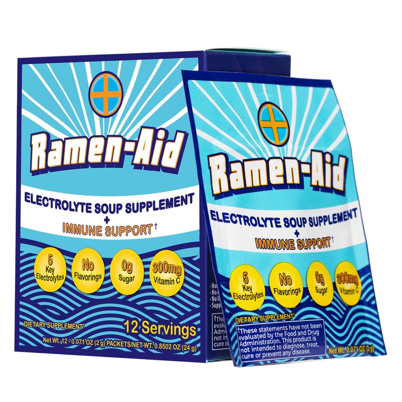 Ramen-Aid Electrolyte Soup Supplement with Immune Support, 300mg Vitamin C, Sodium Free, Sugar-Free, 12 Servings