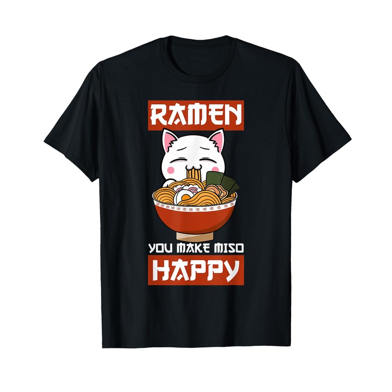 - This ramen cat design features a cute cat eating ramen. It reads: Ramen You Make Miso Happy. Great for people who like to use this traditional Japanese seasoning