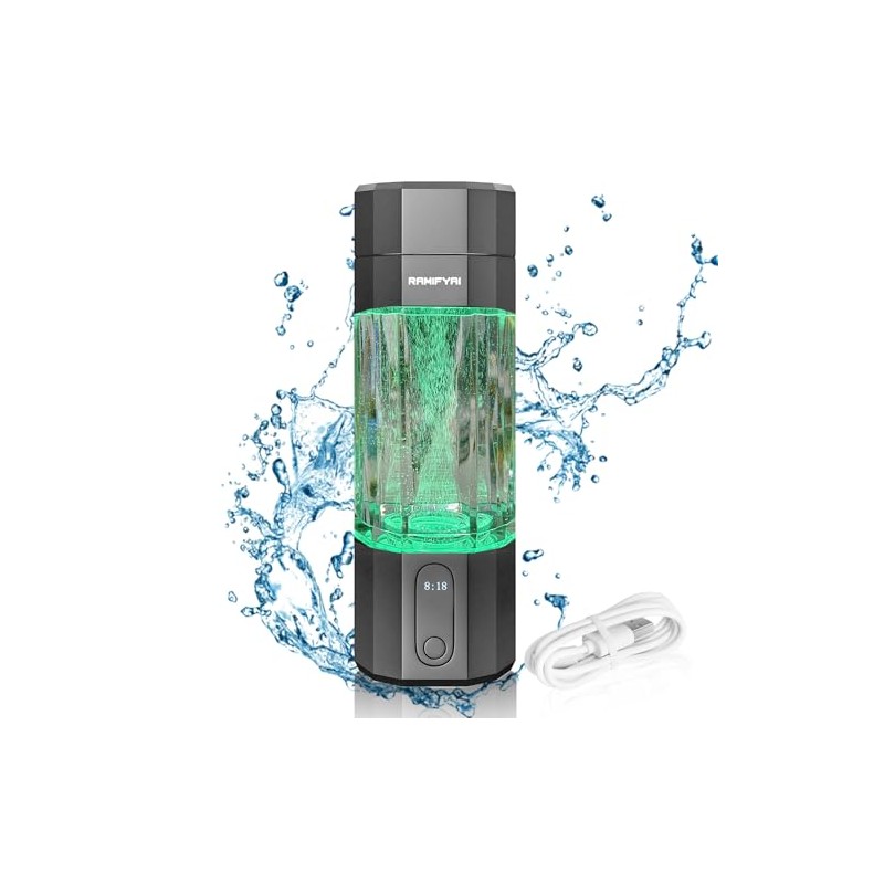 RAMIFYAI New Upgrade Hydrogen Water Bottle-SPE&PEM-Seven Colorful Light Double Anti-Slip and Leak-Proof Hydrogen Water Generator with Pressure Relief Valve (Gray)