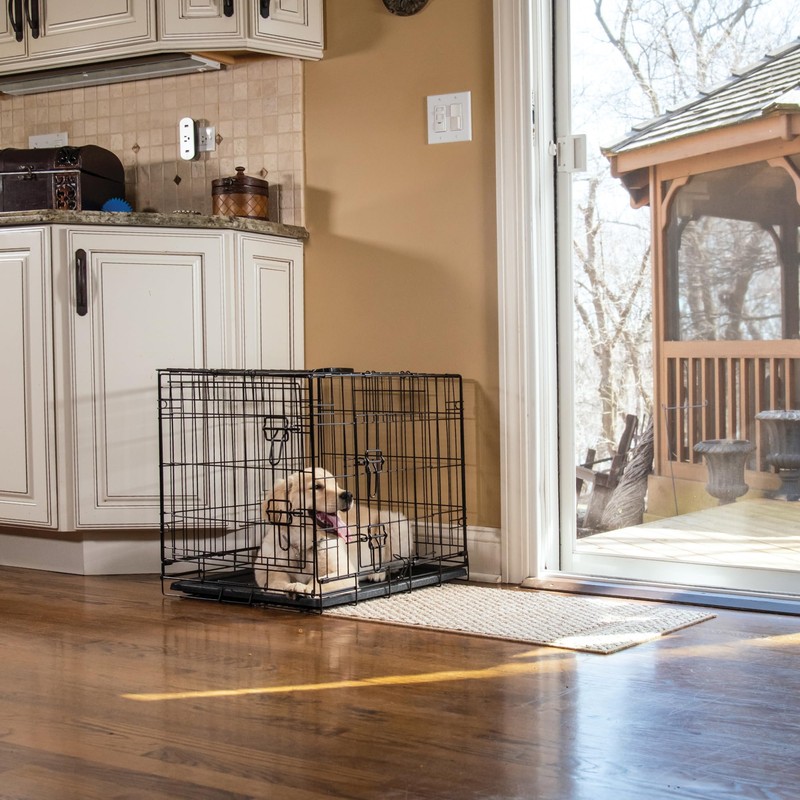 - Rampart pet crates come equipped with double slide bolt latch doors to help provide the maximum safety and security for your beloved pet. Collapsible dog crates allow for easy storage and transportation.