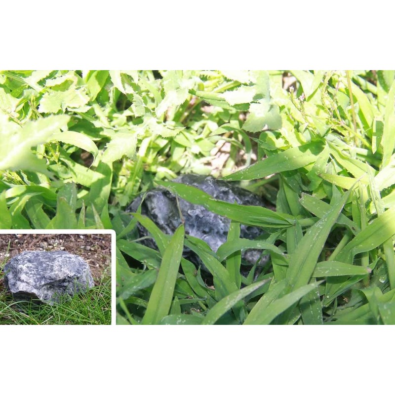 - Goes 'undercover' among shrubs, grass or landscape rocks/wood chips; 3-3/8"L x 2"W x 1-1/4"H, 4 oz