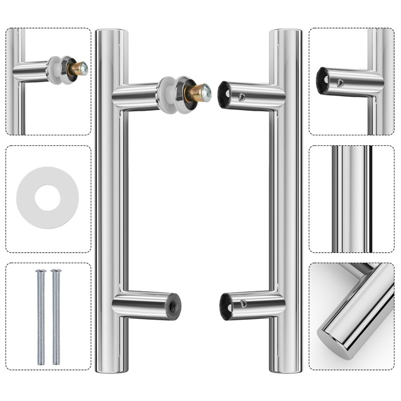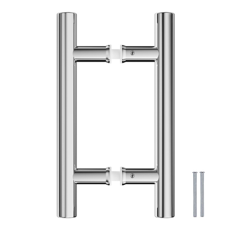 Ranbo Hardware 12" Back to Back 304 Stainless Steel Double Sided Push Pull Door Handle,H Shape Sliding Door Handle,Fit for Glass Door Wooden Door,Polished Chrome Finish