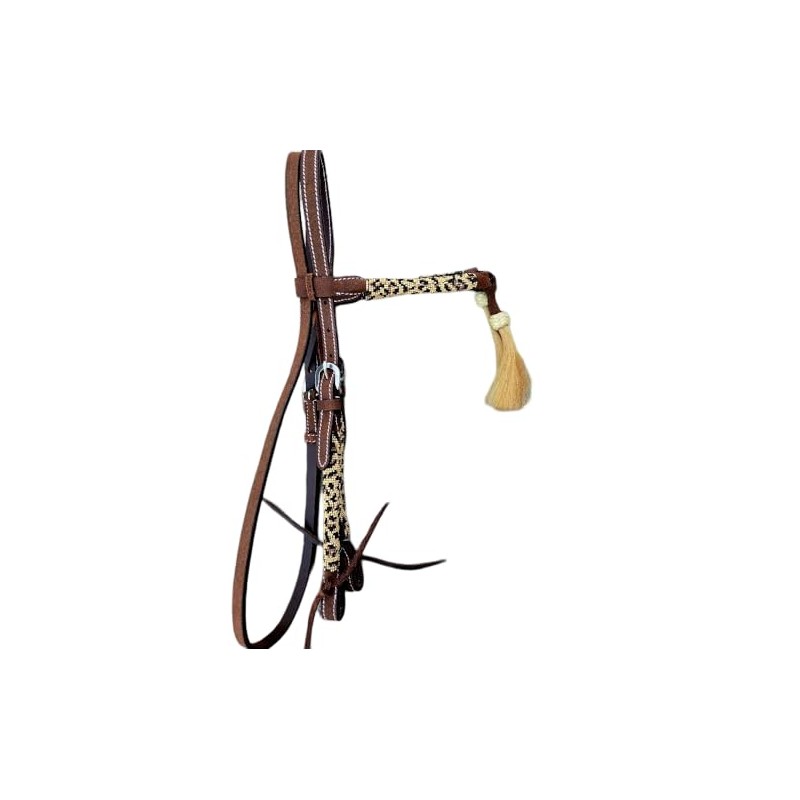 Ranch Hand Store Browband Cheetah Beaded Horse Bridle - Roughout Leather Bridle with Rawhide Accents & Comfortable Fit for Full-Size & Quarter Horses - Western Headstall for Training & Daily Riding