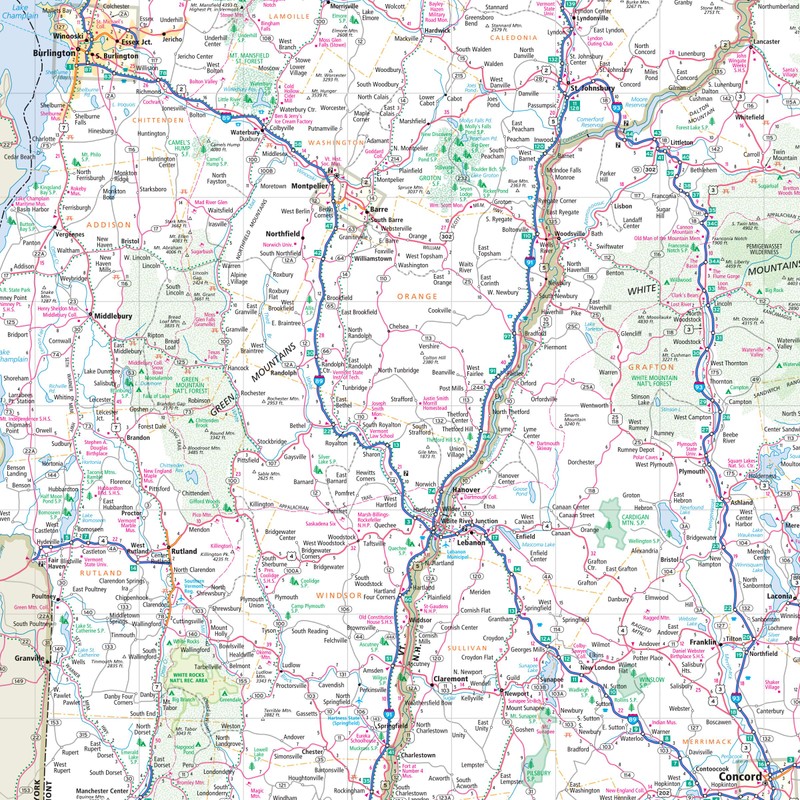 • Indications of county boundaries, schools, shopping malls, parks, golf courses, hospitals, airports, and points of interest