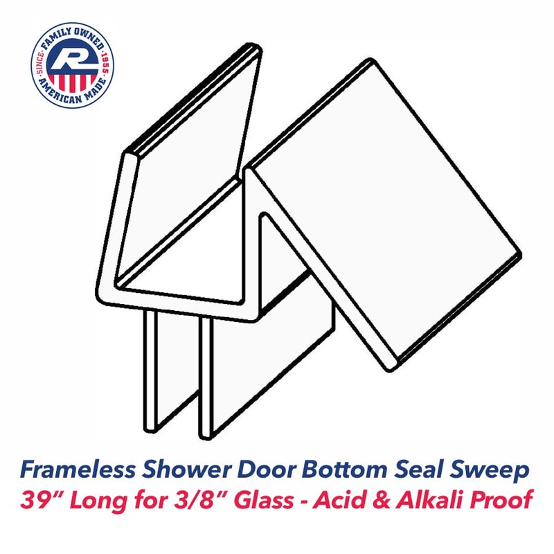 Randall Frameless Shower Door Bottom Seal Sweep 39inches Long for 3/8 inches Glass - Made in The USA - Stop Leaks and Water Coming Out of Shower
