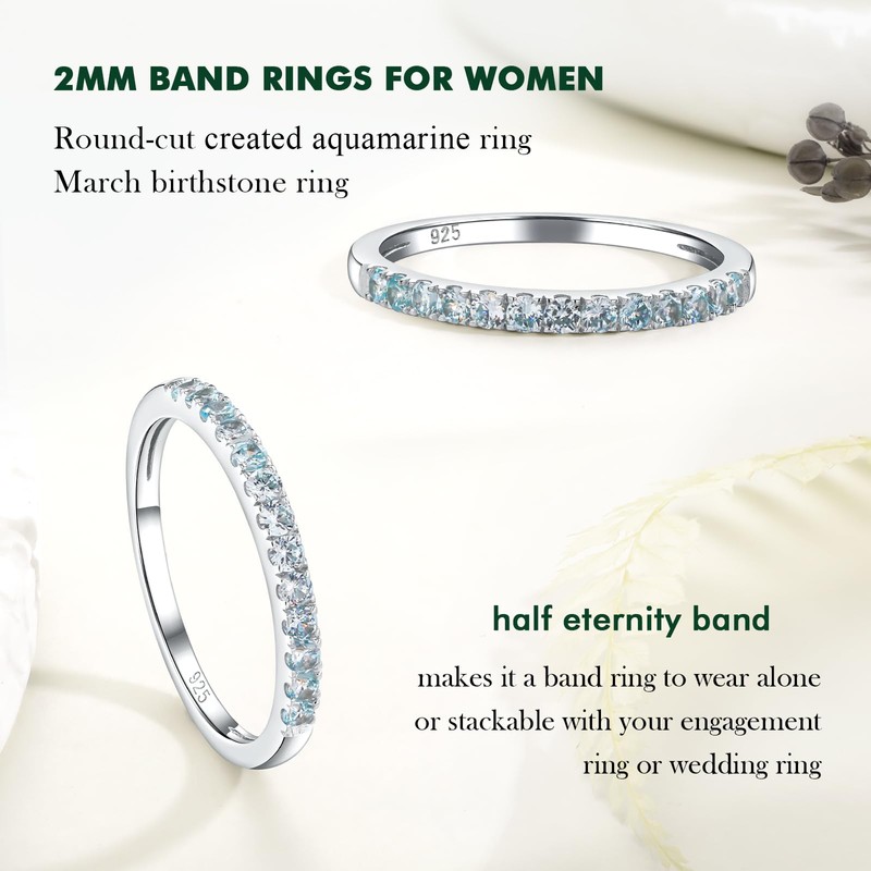 - Aquamarine Rings for Women: This aquamarine ring desgin half eternity round look of sparkling, half set with created aquamarine in a slim, half-eternity light blue stone ring that can be worn alone or stacking with other rings