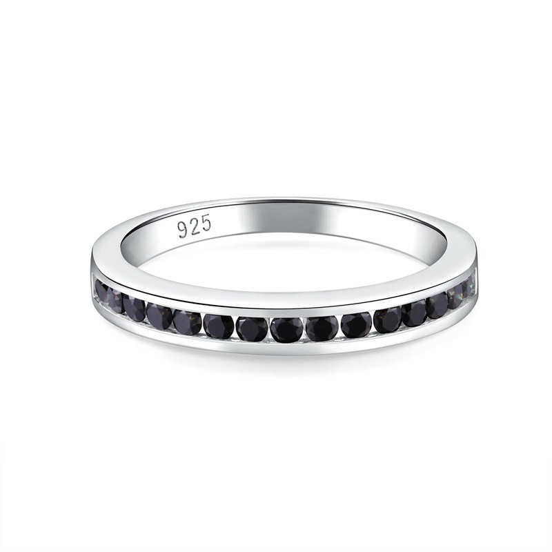 - Blcak Moissanite Eternity Band: This half eternity band ring featuring a half circle set with 0.5 carat moissanite in channel setting, to ensure the moissanite stones won't fall out and the band tapers in width towards the back for everyday wear. This moissanite wedding rings is a symbol of eternal love and sophistication