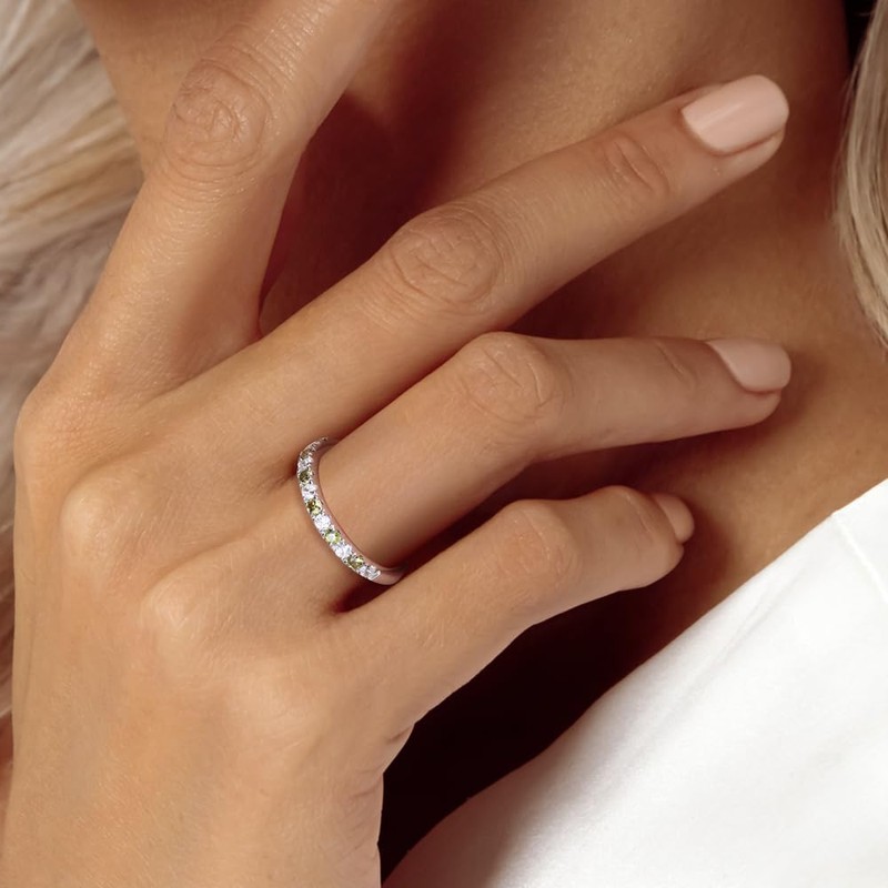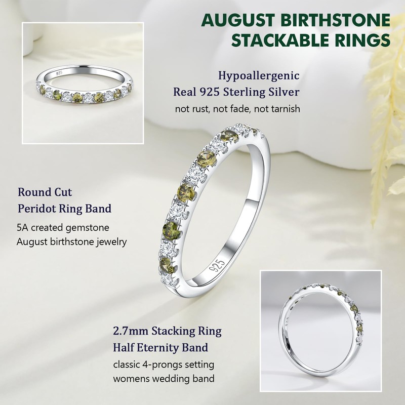 - Peridot Rings for Women: This peridot ring desgin half eternity round look of sparkling, set with created peridot and 5A cubic zircoina in a slim, half-eternity gemstone ring that can be worn alone or stacking with stackable with your engagement ring or wedding ring
