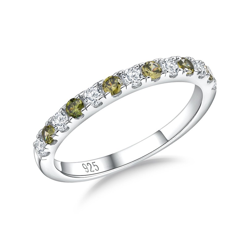 RANDES Peridot Ring Half Eternity Band 925 Sterling Silver Stacking Ring August Birthtone Rings for Women 2.7mm Thin Anniversary Band Size 6