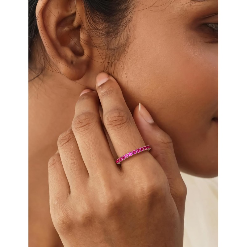 - Ruby Eternity Band: Ruby band ring designed with full eternity band, symbolizing eternal love and commitment. Unlike the half eternity ring, this ruby eternity ring is inlaid with gemstones on ring band and sparkle in every angle light