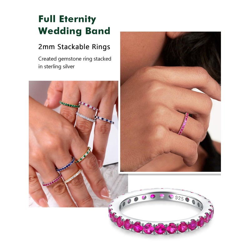 - Sterling Silver Rings for Women: This ruby eternity ring crafted from hypoallergenic 925 sterling silver and 18k white gold plated to give extra shine, not easy to fade or turn green, great for sensitive skin and very comfortable to wear
