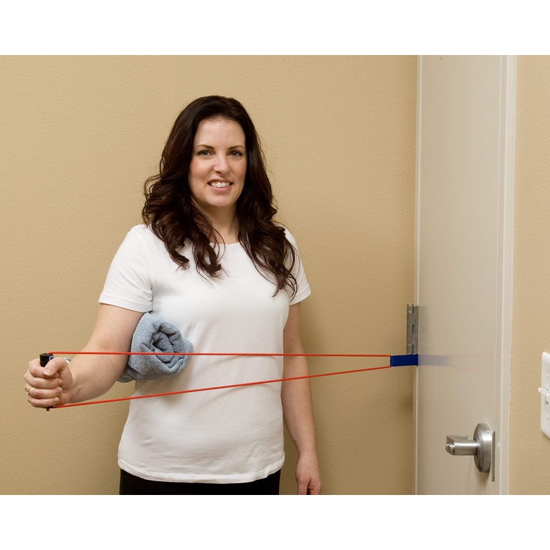 ShoulderFit Resistance Exerciser (Resistance Tube, Plastic Handle and Thera-Loop Door Anchor), Level 1 (Peach)RangeMaster ShoulderFit : 36 inches of variable-resistance, latex-free flex cord/tube with an integrated plastic handle to insure patient comfort by eliminating grasping of the elastic material. The RangeMaster ShoulderFit configuration incorporates an integrated non-slip TheraLoop Door Anchor that turns any hinged door into the basis for a home flex cord gym. Resistance Level 1 (lightest)