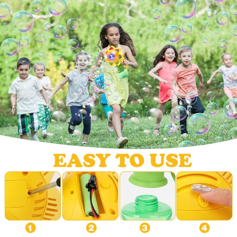 - Attraktives Design: Die Bubble Machine präsentiert sich mit einem zauberhaften Sonnenblumen - Aussehen. Unter dem Licht schüttelt sie ihren Kopf und bläst Seifenblasen, was Kinder sofort anlockt. Das einzigartige Blumendesign ist äußerst kreativ und verleiht Spielen und Aktivitäten noch mehr Spaß.