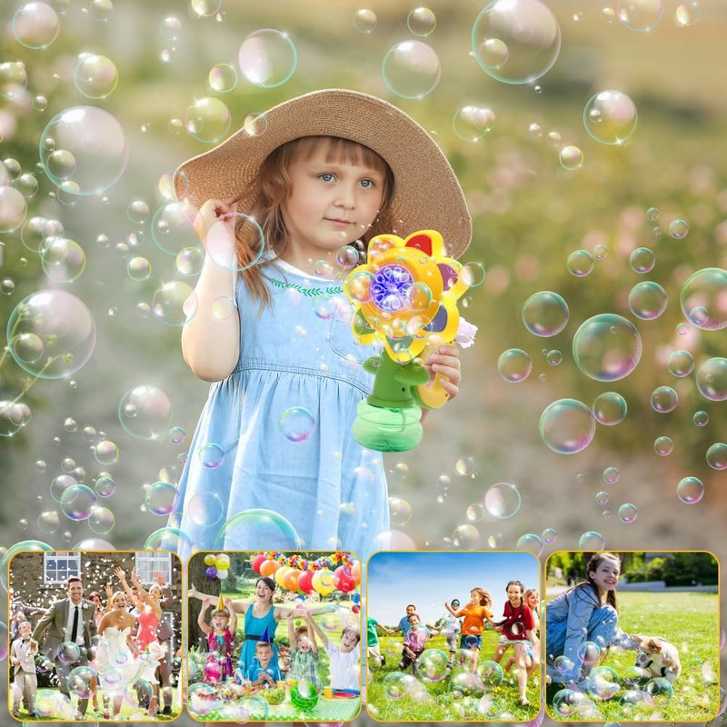 • 【Unikatives Designkonzept】Unsere Sonnenblumen - Seifenblasenmaschine zeichnet sich durch eine beeindruckende Leistung aus. Mit der Fähigkeit, über 10.000 Seifenblasen pro Minute zu erzeugen, bewegt sie sich rhythmisch in ihrer eigenen Art. Dadurch wird jeder Ort, sei es ein Kinderzimmer oder ein großer Garten, mit Leben und Bewegung erfüllt. Sowohl Kindern als auch Erwachsenen werden damit unvergessliche Momente geschaffen, die in Erinnerung bleiben.