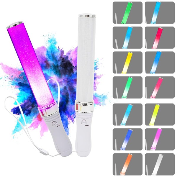 RANJIMA LED Glow Sticks, 2 Pieces Light Toy Party Item Set, Glow Duster Party Set, Glow Sticks Colourful with 15 Colours, Glow Stick Glow in the Dark for Children, Christmas, Party, Wedding, Carnival