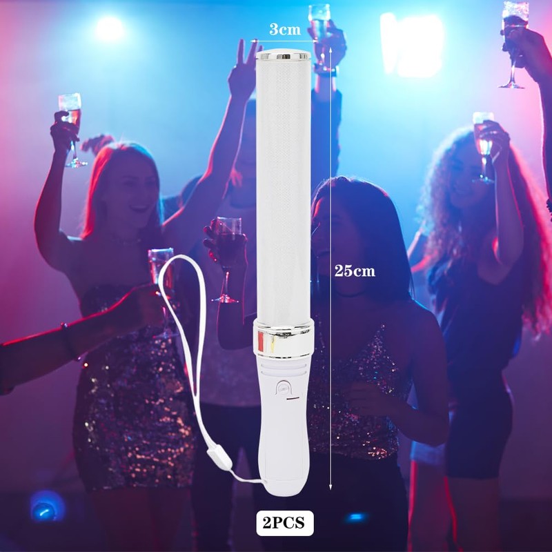 - LED light sticks: package includes: 2 light sticks. Dimensions: 25 cm. Each fiber optic light stick flashes alternately in 15 colors, red/green/blue/pink/white/yellow/orange/purple/light green/light blue/light red/light pink/turquoise/crystal blue/light yellow for your decorative needs and daily use. An ideal addition to most types of parties. Easy to use and rich colours, easy to create perfect party atmosphere