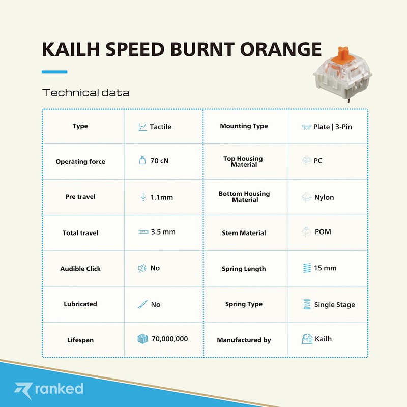 Ranked Kailh Key Switches for Mechanical Gaming Keyboards | Plate Mounted (Kailh Speed Burnt Orange, 90 Pcs)