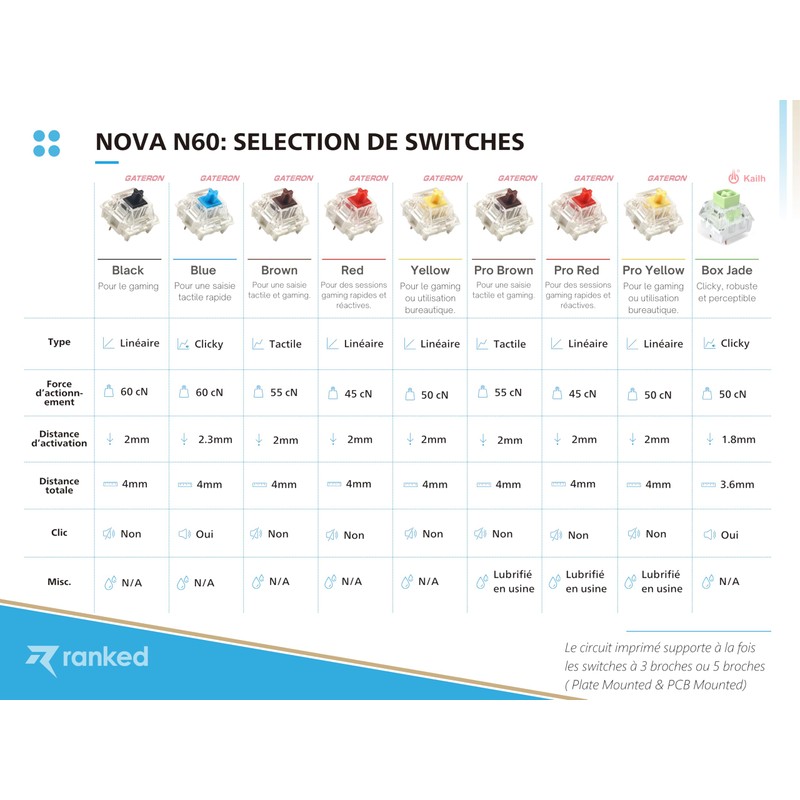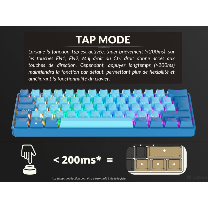 Ranked N60 Nova 60% | Hot Swappable Mechanical Gaming Keyboard | 62 Keys Multi Color RGB LED Backlit for PC/Mac Gamer | ISO FR AZERTY French Layout (Blue, Gateron Pro Yellow)