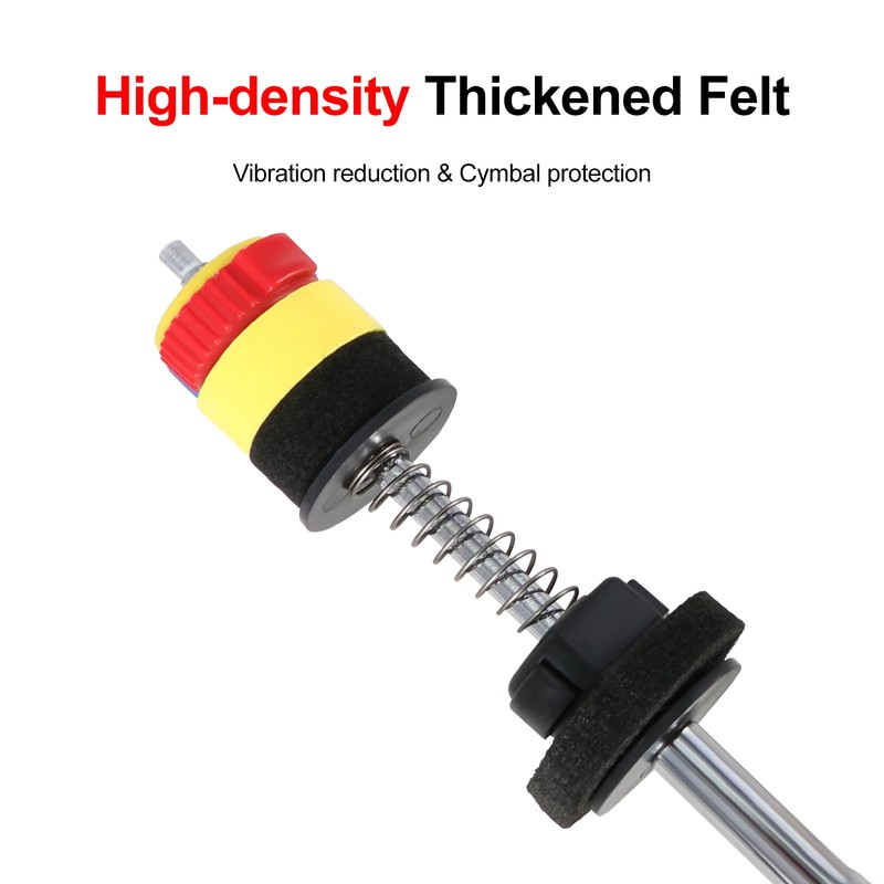 • Sturdy & Stable: The thickened knob of the cymbal arm clamp can easily clamp the rack, and the thickened pad reduces vibration to avoid frequent adjustment of the cymbal arm position during long-term practice. The cymbal extension mount and L-shaped cymbal arm can be used separately. The cymbal boom arm is suitable for 10mm cymbal arms, and the L-shaped arm can support 8-12-inch splash cymbals and some small cymbals