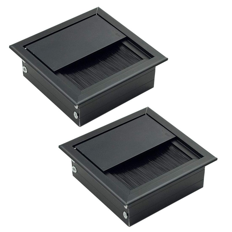 Rannb Square Cable Grommet Metal Wire Hole Cover for Computer Desk Table Black 80mm x 80mm - Pack of 2