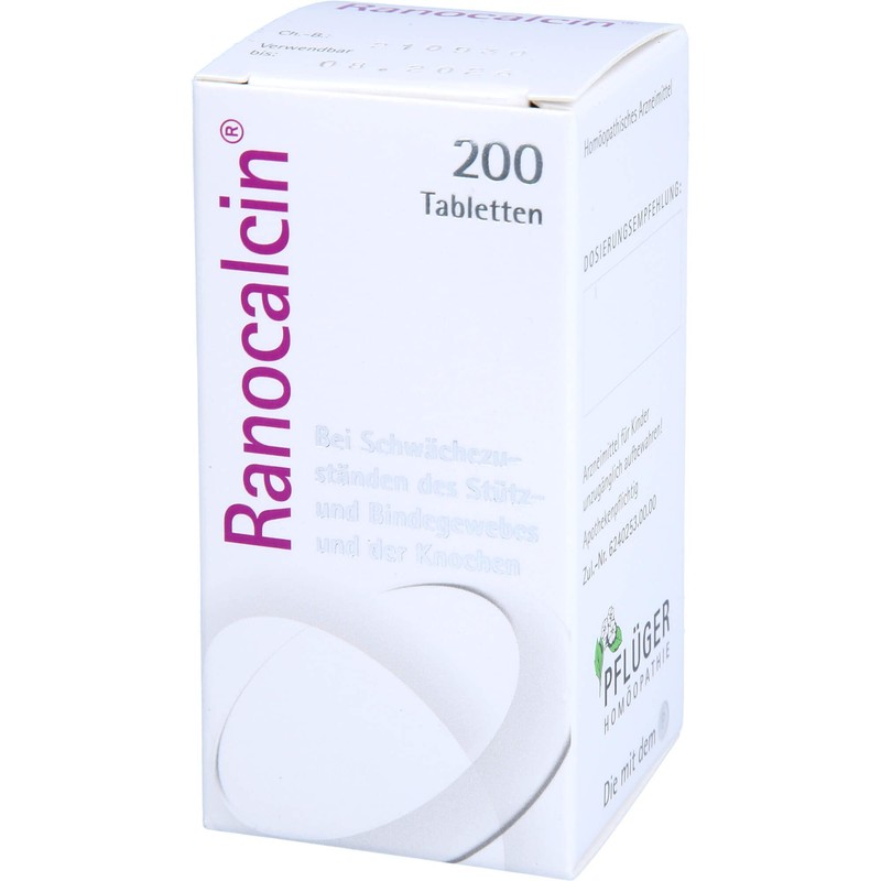 RANOCALCINE. Areas of application: the areas of application are derived from the homeopathic pharmaceutical images. These include: weakness states of support and connective tissue and bones. Warning: contains lactose.
