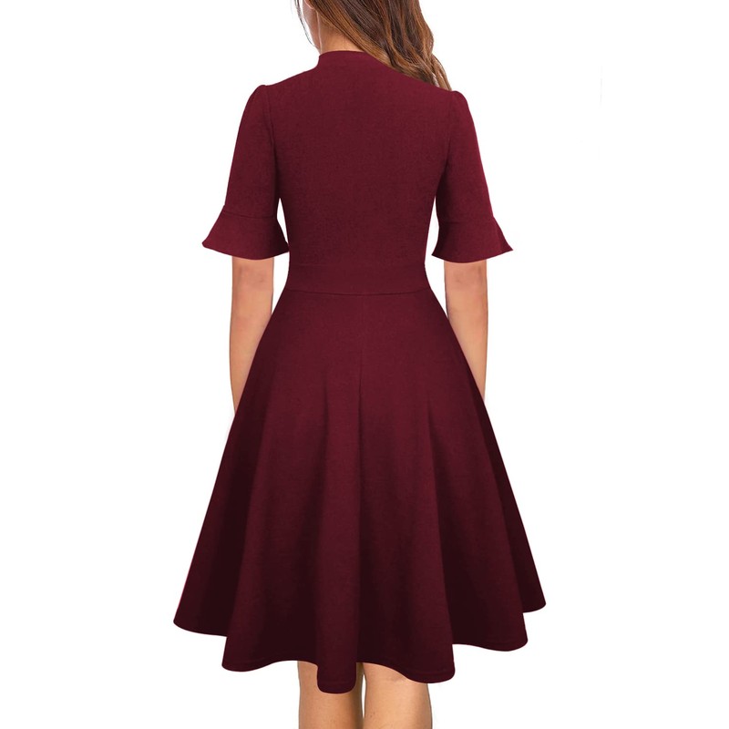 - Ladies pretty modest boutique swing solid aline dresses.Eye-catching maroon knee length flared skirt which drapes nicely at your knees,slightly wider bottom is very friendly to curvy women