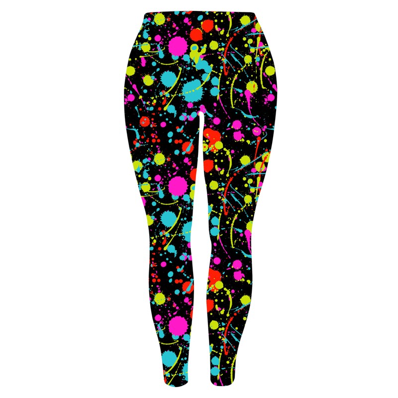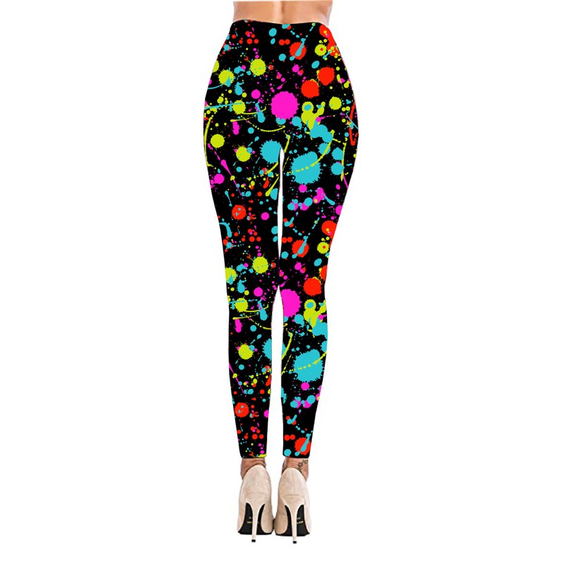 Rantanto Soft Cat Kitten Meow Funny Ladies Leggings,Neon Splatter,Large