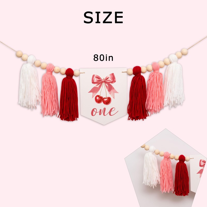 - SOFT FABRIC TASSEL GARLAND INCLUDED - Adorned with playful fabric tassels in coordinating red, white, and pink tones, this banner adds a fun pop of color and texture that complements cherry-themed partyware or summer decor.