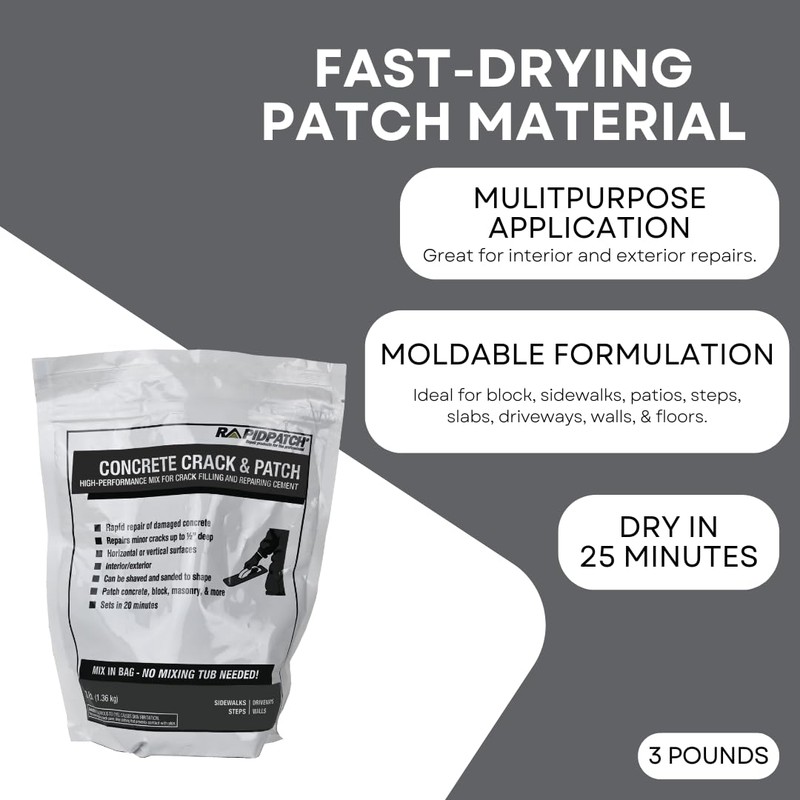 Rapid Patch Concrete Crack & Patch - Repair Concrete, Block, & Masonry in Gray (3 Pounds)