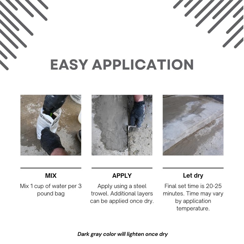 - EFFICIENT: Repairs minor cracks up to ½ inches deep and larger repairs up to 5 inches