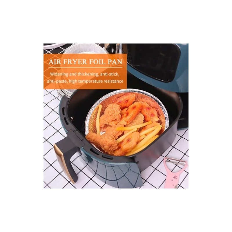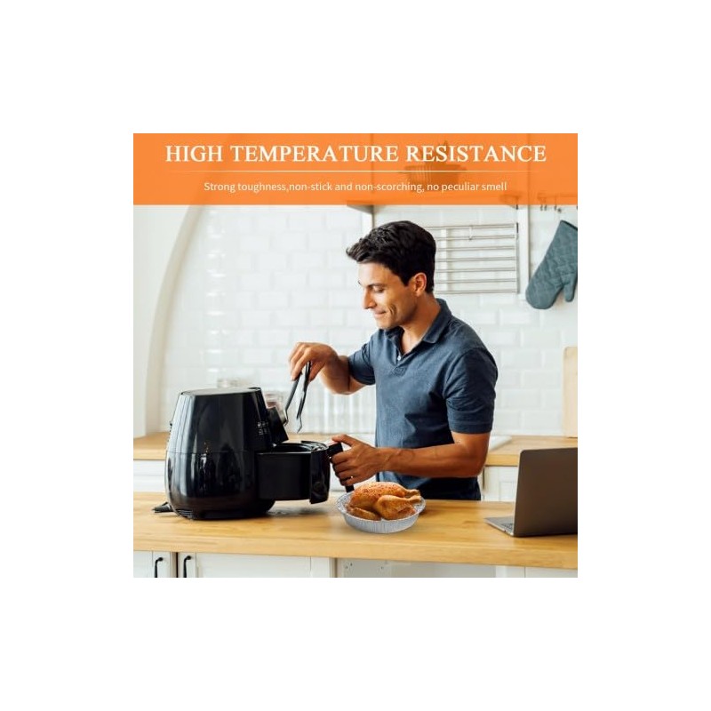 - Easy to use: This 8 inch aluminium foil box for hot air fryers has a round bowl shape that is suitable for most hot air fryers, and the raised design prevents stains on the pot wall, and you can put the ingredients directly into it when they are done. It is convenient and quick to use.