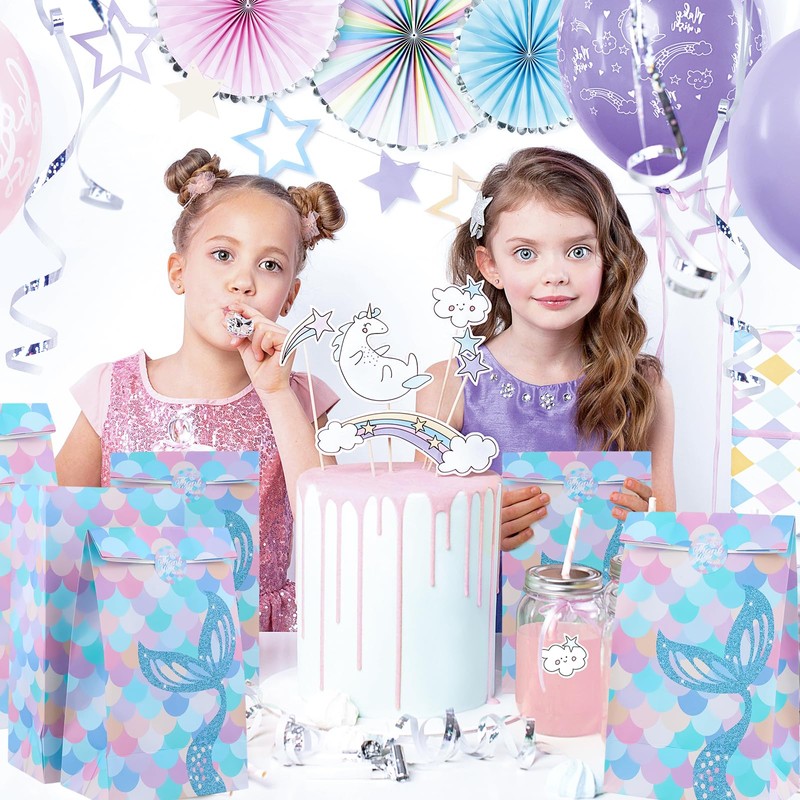 Rapidbok Rapidbok 12 Stück Meerjungfrau Geschenktüten Papier mit 12 Aufkleber, Papiertüten Klein, Kindergeburtstag Geschenktüten, Partytüten Set, Candy Tüten zum Verpacken von Geschenken, Giveaways, Party (C)