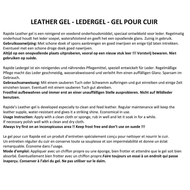Cleansing and nourishing care. Regular care this will get the leather smooth, water resistant and gives it a beautiful gloss. Suitable for smooth and nubuck leather, and it can nubuck leather nachdunkeln. Economical to use. Please with a clean cloth or sponge, rub well and leave-in. Then may with a clean cloth, rub. Always on a inconspicuous area first. Please use not to be used on suede and frost-free environment. For use with: clothing Category: Waterproofing agent cleaning solution Intended Use: Care Contents; Box Contents: 200 ml