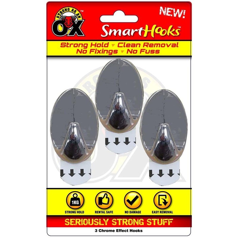 Rapide Products HE331P Small Oval Hooks, 30mm x 50mm, Chrome Effect Pack of 3, Multi-Colour