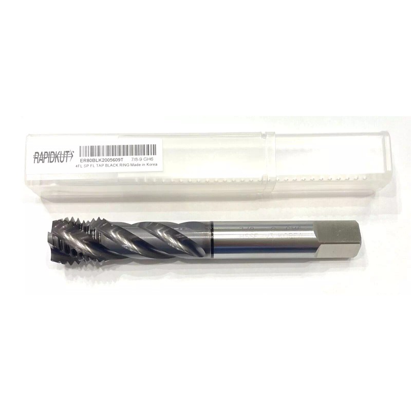 RapidKut 7/8-9 Tap HSSE-V3 Spiral Flute Semi-Bottoming Tap TiCN GH6 4 Flute